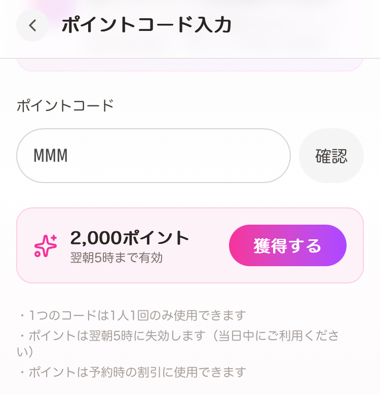 🌟2:会員登録後にキーワードを「マイページ」の「コード入力」から行っていただきます。