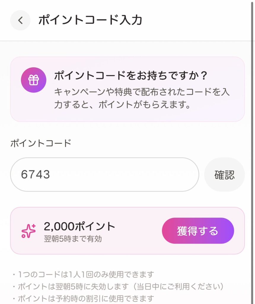 🌟2:会員登録後にキーワードを「マイページ」の「コード入力」から行っていただきます。