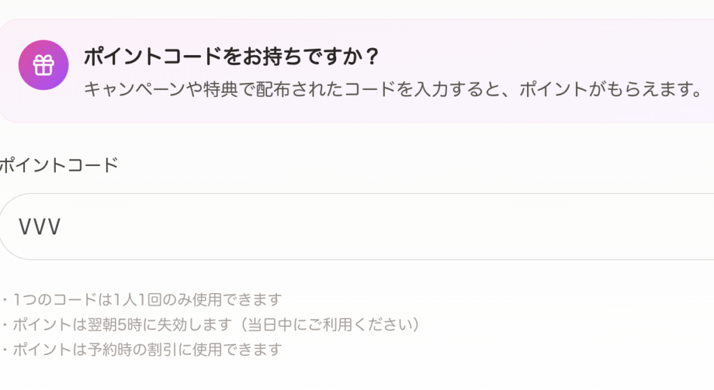 ※1日に2回以上割引を使用する場合は再度、取得と入力の必要がございます。ご相談くださいませ!