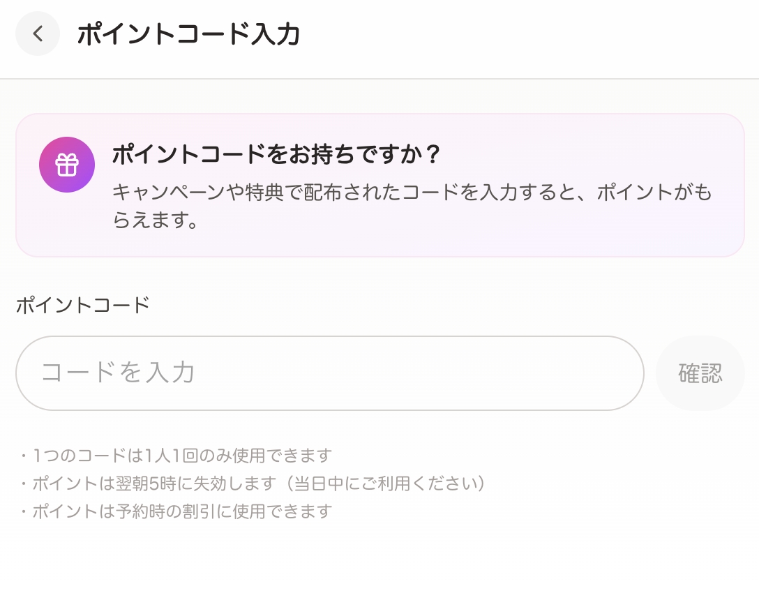 🌟2:会員登録後にキーワードを「マイページ」の「コード入力」から行っていただきます。