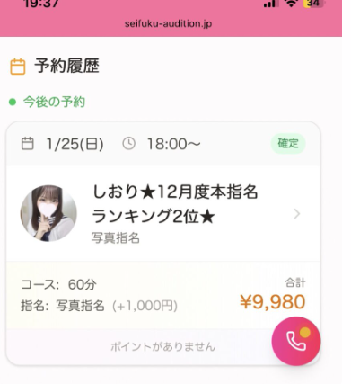 しおりちゃん60分9980円のご予約を例に