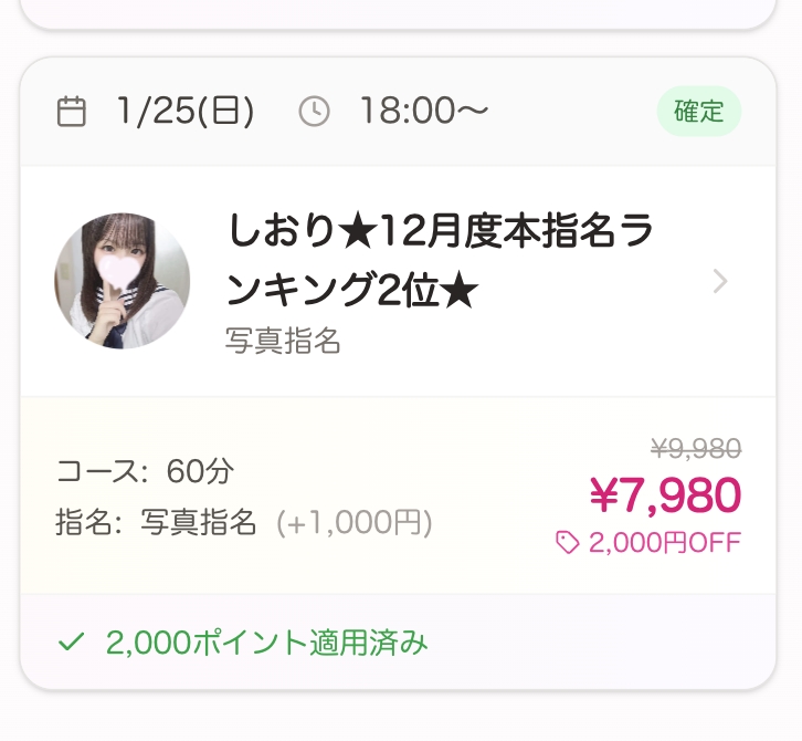 📅2月25日(水)当日限定の割引コードです!※本指名様も適用🉑