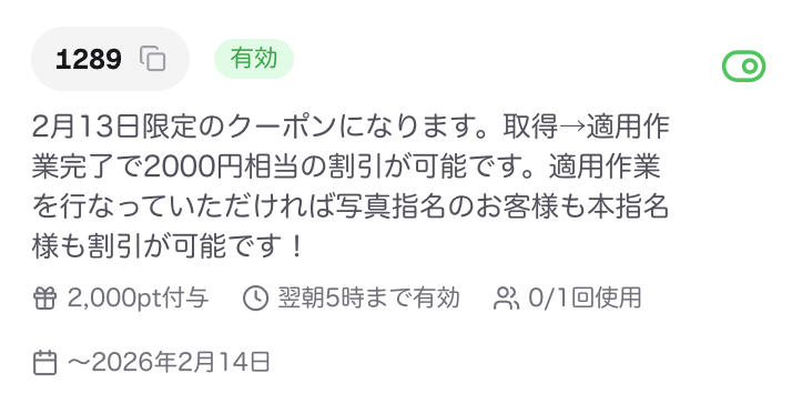 📌正しくクーポンが発行されている場合は