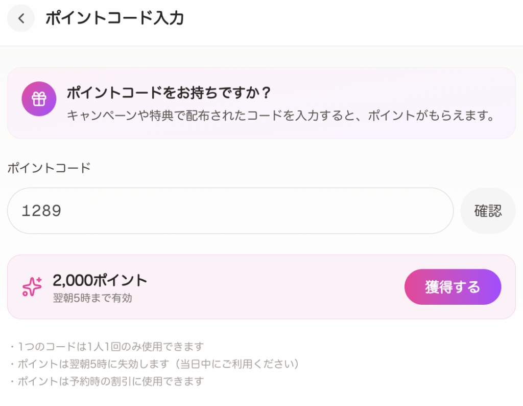 ※1日に2回以上割引を使用する場合は再度、取得と入力の必要がございます。ご相談くださいませ!