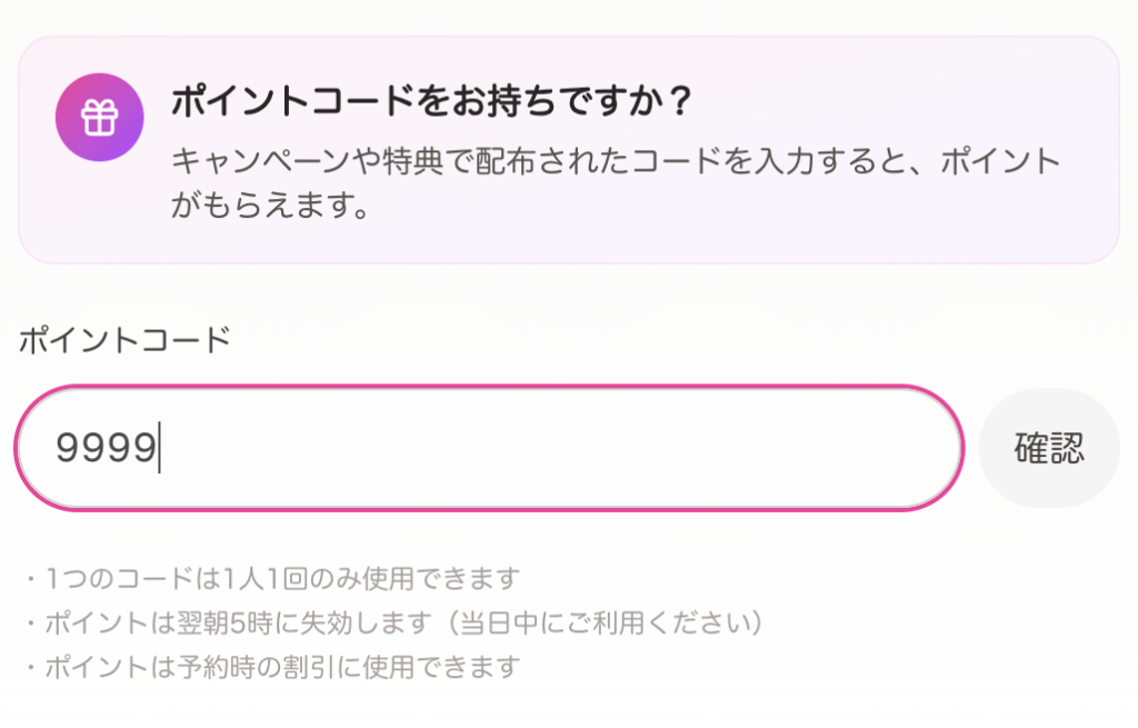 ※1日に2回以上割引を使用する場合は再度、取得と入力の必要がございます。ご相談くださいませ!