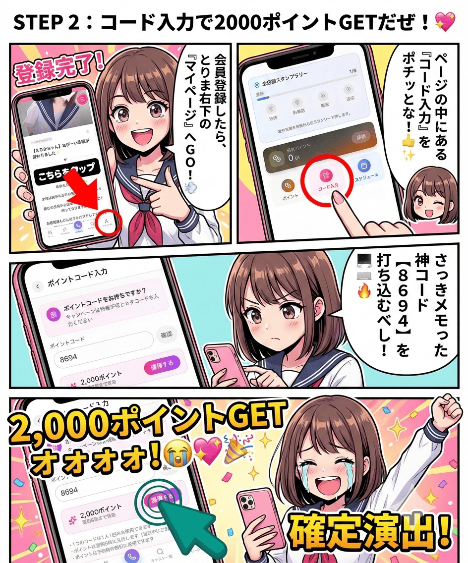 🌟 STEP 2:会員登録・コード入力でポイントGET!