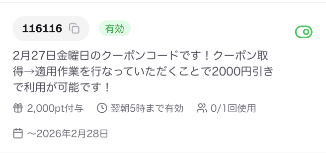 2/27(金)クーポンコード💘