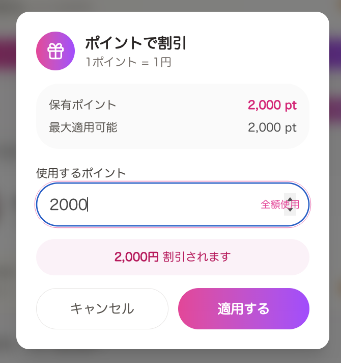 24時間限定の「2000PT」の