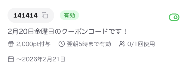 🎀2/20(金)クーポンコードのお知らせ!🎀