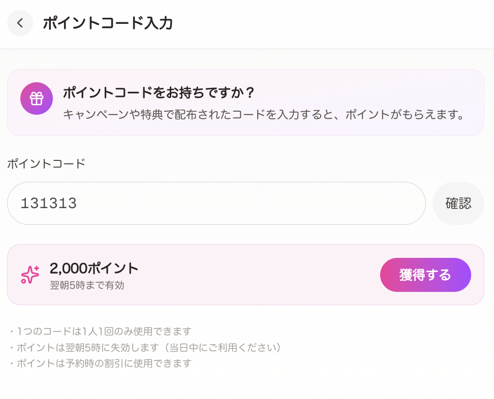 例 ポイントコード「131313」